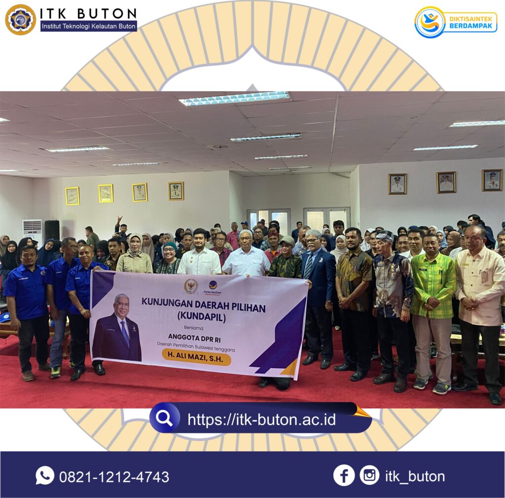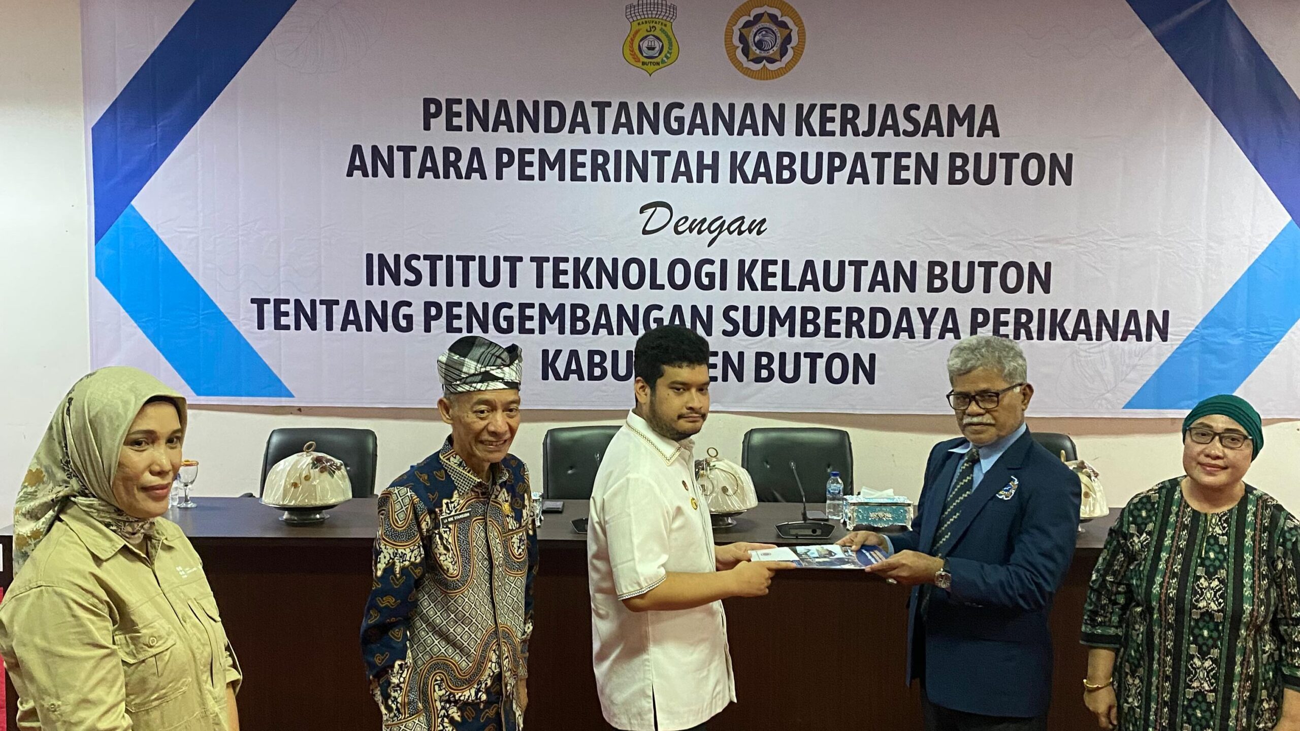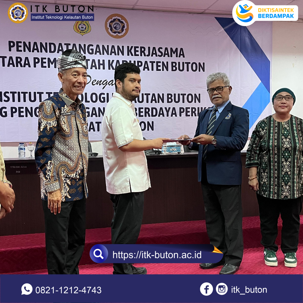 Sabtu, 12 Juli 2025 di Aula Kantor Bupati Buton (Takawa) telah terlaksana penandatanganan kerjasama antara Pemerintah Kabupaten Buton dan Institut Teknologi Kelautan Buton tentang pengembangan sumberdaya perikanan Kabupaten Buton.